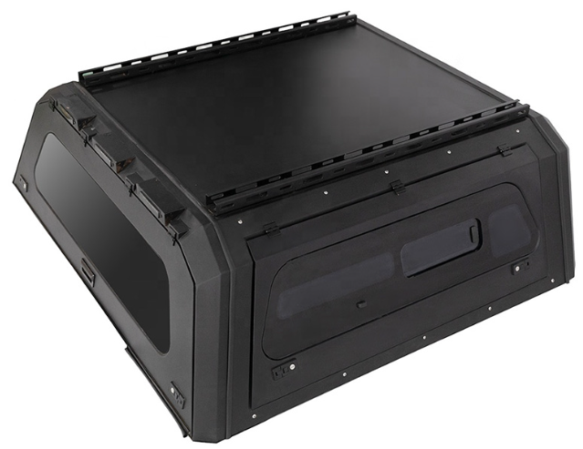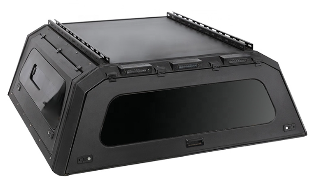 Su estructura rígida y su diseño angular entregan seguridad, orden y una estética profesional, mientras que su techo incorpora rieles superiores integrados, permitiendo montar accesorios y seguir aprovechando la camioneta al máximo.